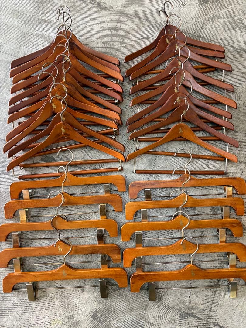 ブルックスブラザーズのネクタイハンガーです。希少品と思います。木製で、プレートタグ付きです。一本だけ根本を折ってしまい、木工ボンドで修理したあとがあります。そこだけ5ミリほど短いですが、完全に固まってますし、気にならないと思います。(最後の写真参照)サイズはだいたい横 51cm 縦 5cm 奥行 6cm くらいです。ご検討ください。