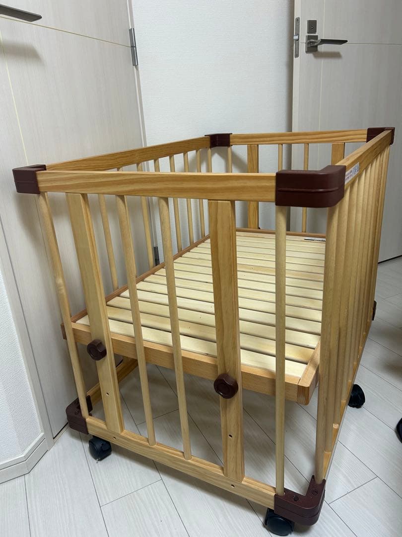 まっです。家族みんなでの添い寝が可能な、日本のベビーベッドのリーディングカンパニーYAMASAKI(ヤマサキ)のスリーオープンベッド b-sideDX(商品番号 SS-270)です。色はダークブラウンです\r\rメルカリでリユース品購入、娘が0か月から2歳まで使用しました。しっかりとした造りです。\r\r側面がオープンするので、親のベッドで添い寝して寝かしつけたあとベビーベッドへの移動が楽でした。高さ調整や収納も便利でした。大型なので2歳までこどもが十分にゴロゴロ寝ることが出来ました。\r\r傷があちこちあるものの、まだまだ使えるものなので必要な方へ向けて出品します。送料込みの為利益ほぼ無しです。お値引き対応ありませんご了承下さい。\r\r主な傷を画像にしておりますが全ての傷ということではありませんのでご了承ください。汚れは除菌シートで拭いておりますが、残っている可能性もあることをご了承ください。\r\r分解状態を梱包・発送たのメル便で発送します。\r組み立てや階上への持ち運びなどオプション対応は直接お支払いただければ対応可能です。詳細はガイドご参照ください。\r\r\r以下、メーカーサイトより\r販売価格54,450円\r\r商品の詳細情報\rサイズ外径 幅82×長さ125×高さ89cm\r内径 幅70×長さ120cm\r重量本体重量:約29kg\r素材ドイツ産ビーチ材(日本名:ブナ材)\rナチュラル・ダークブラウン:エコウレタン塗装\rホワイト:エコウレタン塗装(エナメル系)\r機能床板高さ2段階調節(床から45・40㎝)\r※つかまり立ちを始めたら床板の位置を下げて頂く為、上記とは別に床から15cmの位置(収納棚の真上)に変更が可能\r前後枠扉スライド開閉式 (上下にスライド)\r横枠開閉式(手前に倒れます)\r収納扉(2ヶ所)および棚付\r4輪キャスター付 (全てストッパー付)\r収納棚付\r対象年齢新生児~24か月以内\rその他PSCマーク、SGマーク適合商品\rpsc sg